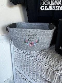 Braided basket embroidered Choose Joy